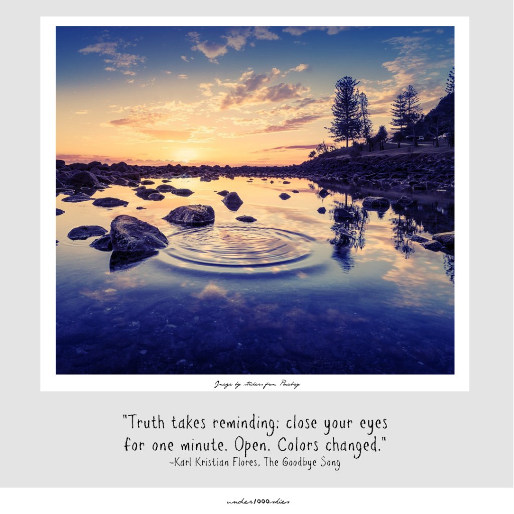 Gems 7.129 Posted on October 7, 2021 by Niki Flow I hope you’re having a beautiful day. ♡Here’s another light-filled ¤ Gem ¤ Image by strikers from Pixabay “Truth takes reminding: close your eyes for one minute. Open. Colors changed.”-Karl Kristian Flores, The Goodbye Song Did you like this post? Please share it! Click to share on X (Opens in new window) X Click to share on Facebook (Opens in new window) Facebook Click to share on LinkedIn (Opens in new window) LinkedIn Click to share on Reddit (Opens in new window) Reddit Click to share on Tumblr (Opens in new window) Tumblr Click to share on Pinterest (Opens in new window) Pinterest Click to email a link to a friend (Opens in new window) Email Like Loading...