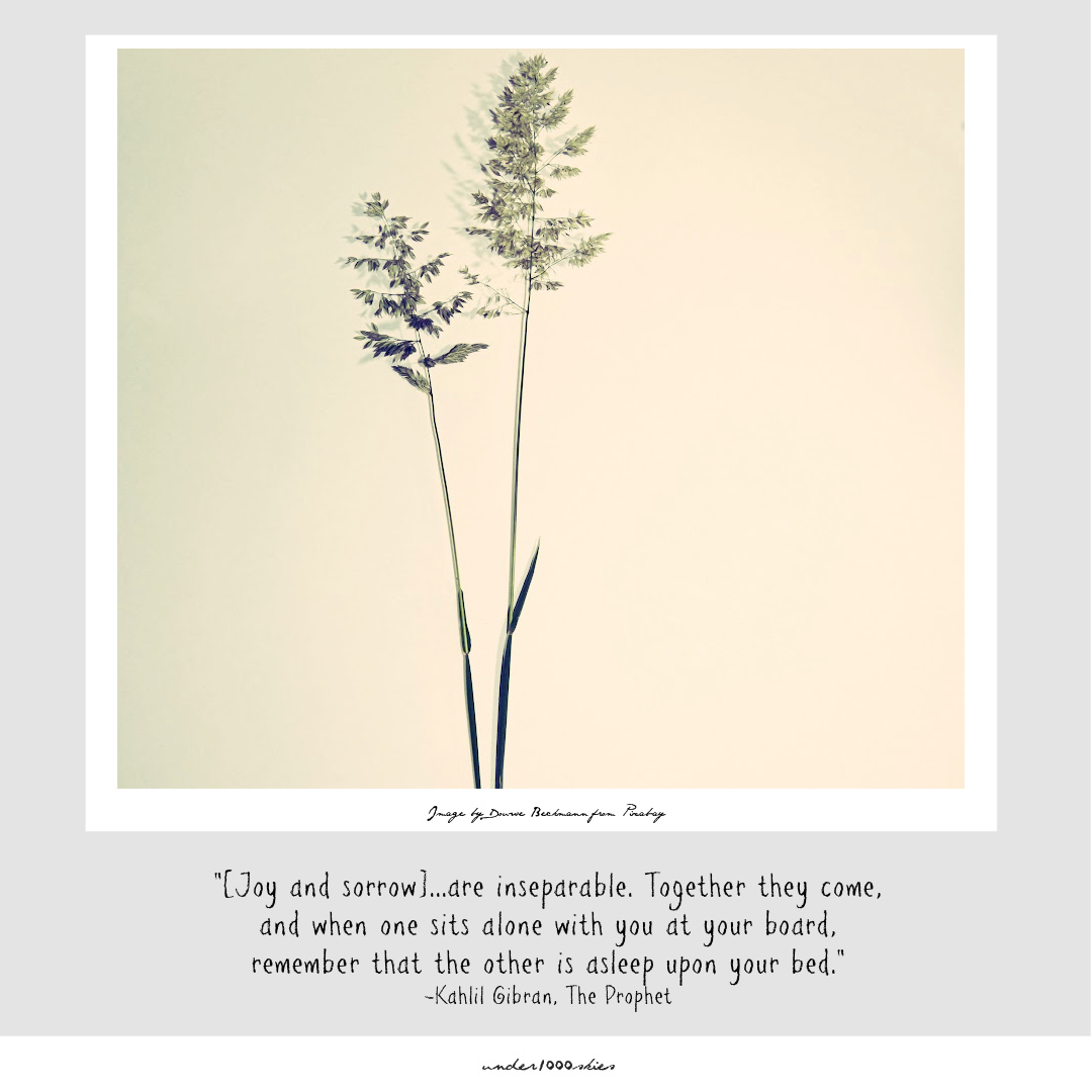 “[Joy and sorrow]…are inseparable. Together they come, and when one sits alone with you at your board, remember that the other is asleep upon your bed.”