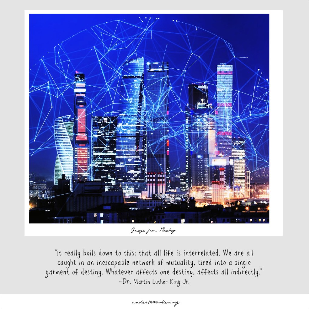 “It really boils down to this: that all life is interrelated. We are all caught in an inescapable network of mutuality, tired into a single garment of destiny. Whatever affects one destiny, affects all indirectly.”