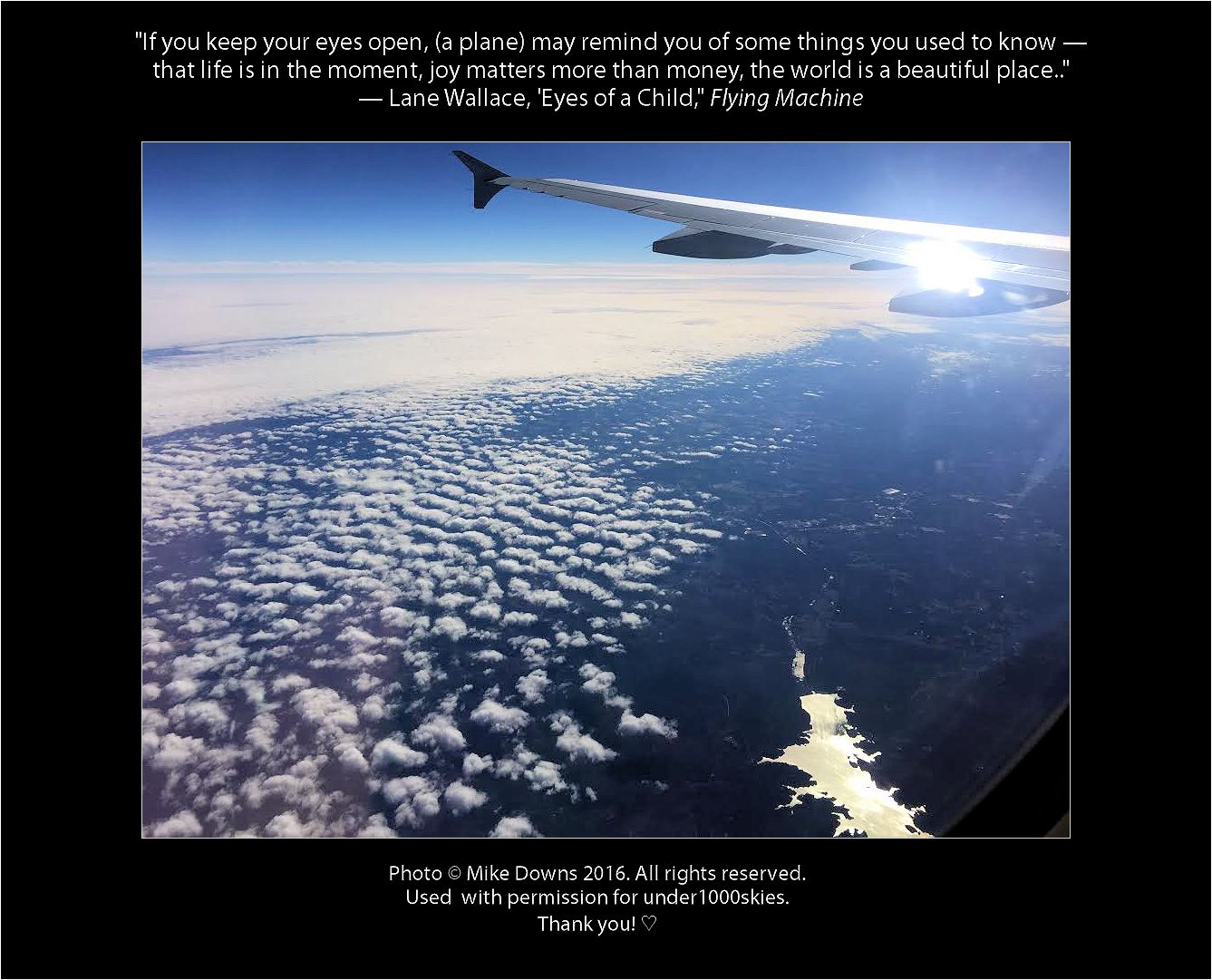 “If you keep your eyes open, (a plane) may remind you of some things you used to know — that life is in the moment, joy matters more than money, the world is a beautiful place.”