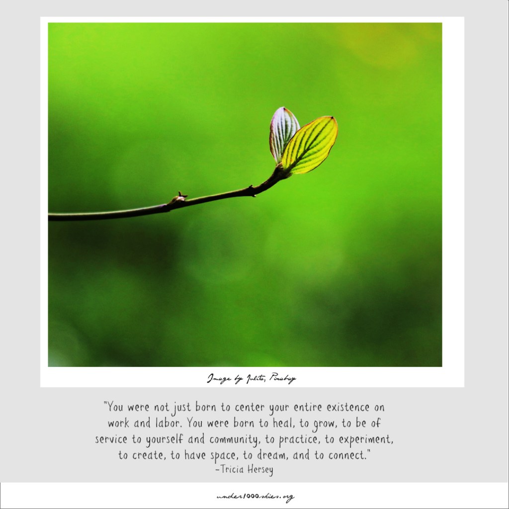 “You were not just born to center your entire existence on work and labor. You were born to heal, to grow, to be of service to yourself and community, to practice, to experiment, to create, to have space, to dream, and to connect.”
