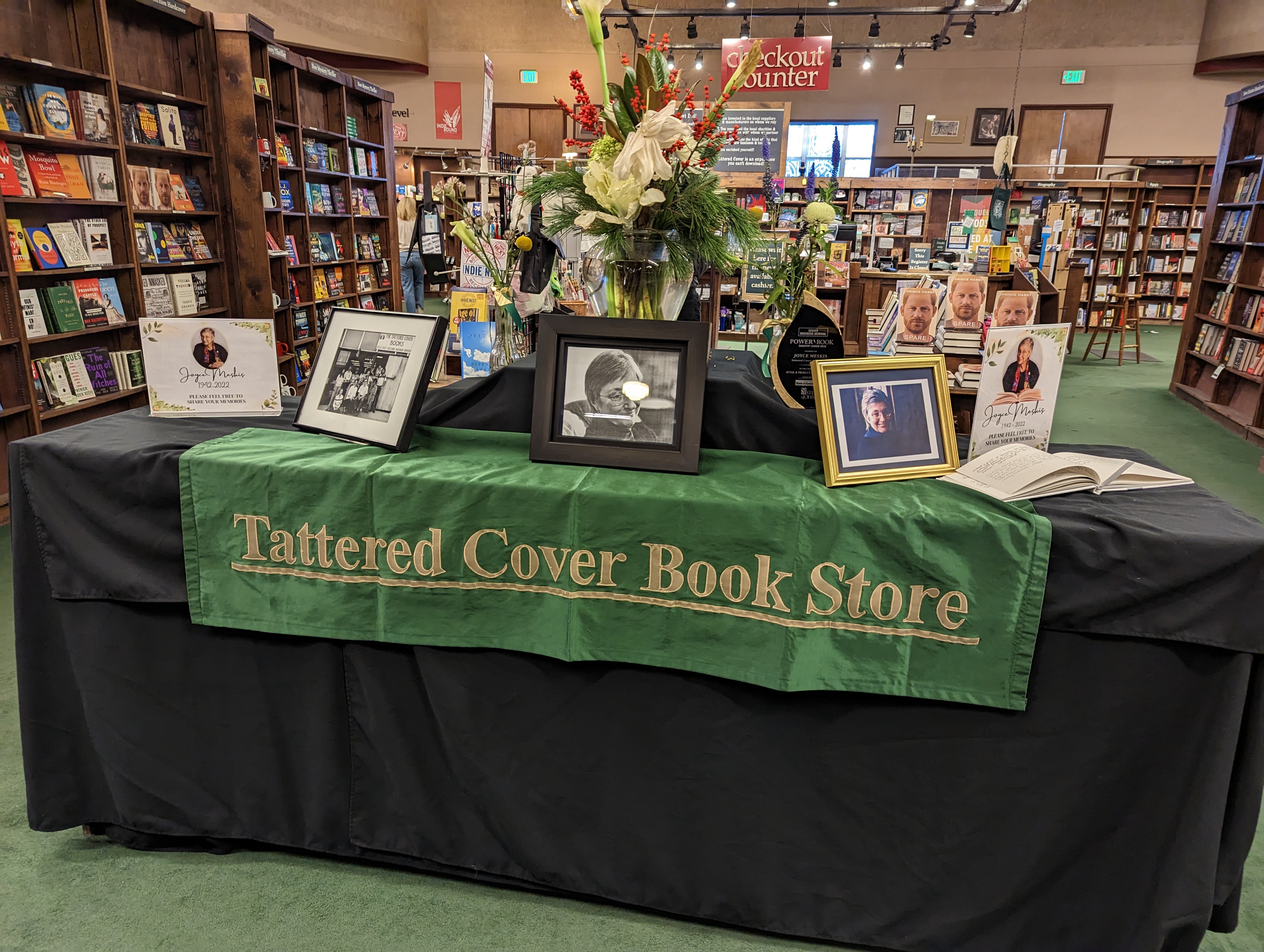 Photos: 1. John at an Open Mic event at Tattered Cover. 2-3: Honoring the beloved Joyce Meskis. The photographer is unknown.