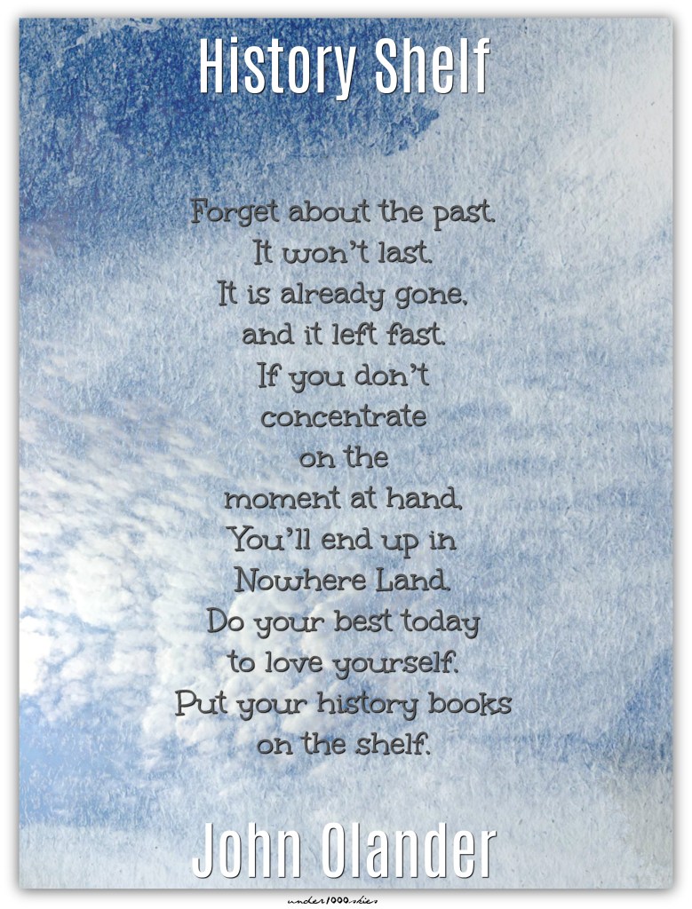 John: The prompt was, “Before you begin this, you must end this. Before you end this, you must begin this.” And the poem goes like this. It’s called the “History Shelf.” It goes,