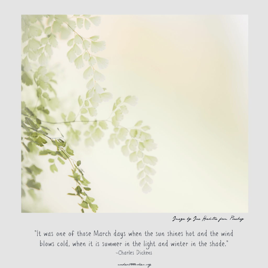 “It was one of those March days when the sun shines hot and the wind blows cold, when it is summer in the light and winter in the shade.”