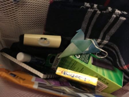baseball cap in summer), Mindy Peace Doves, gum, and lip balm.