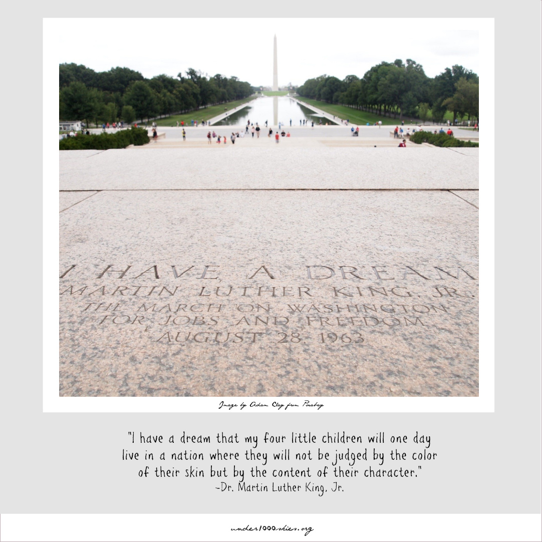 “I have a dream that my four little children will one day live in a nation where they will not be judged by the color of their skin but by the content of their character.”