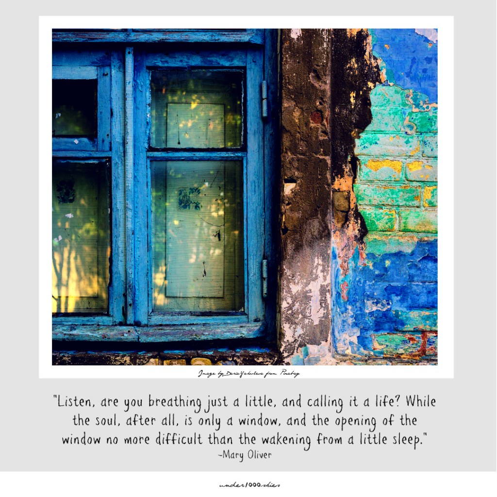 “Listen, are you breathing just a little, and calling it a life? While the soul, after all, is only a window, and the opening of the window no more difficult than the wakening from a little sleep.”