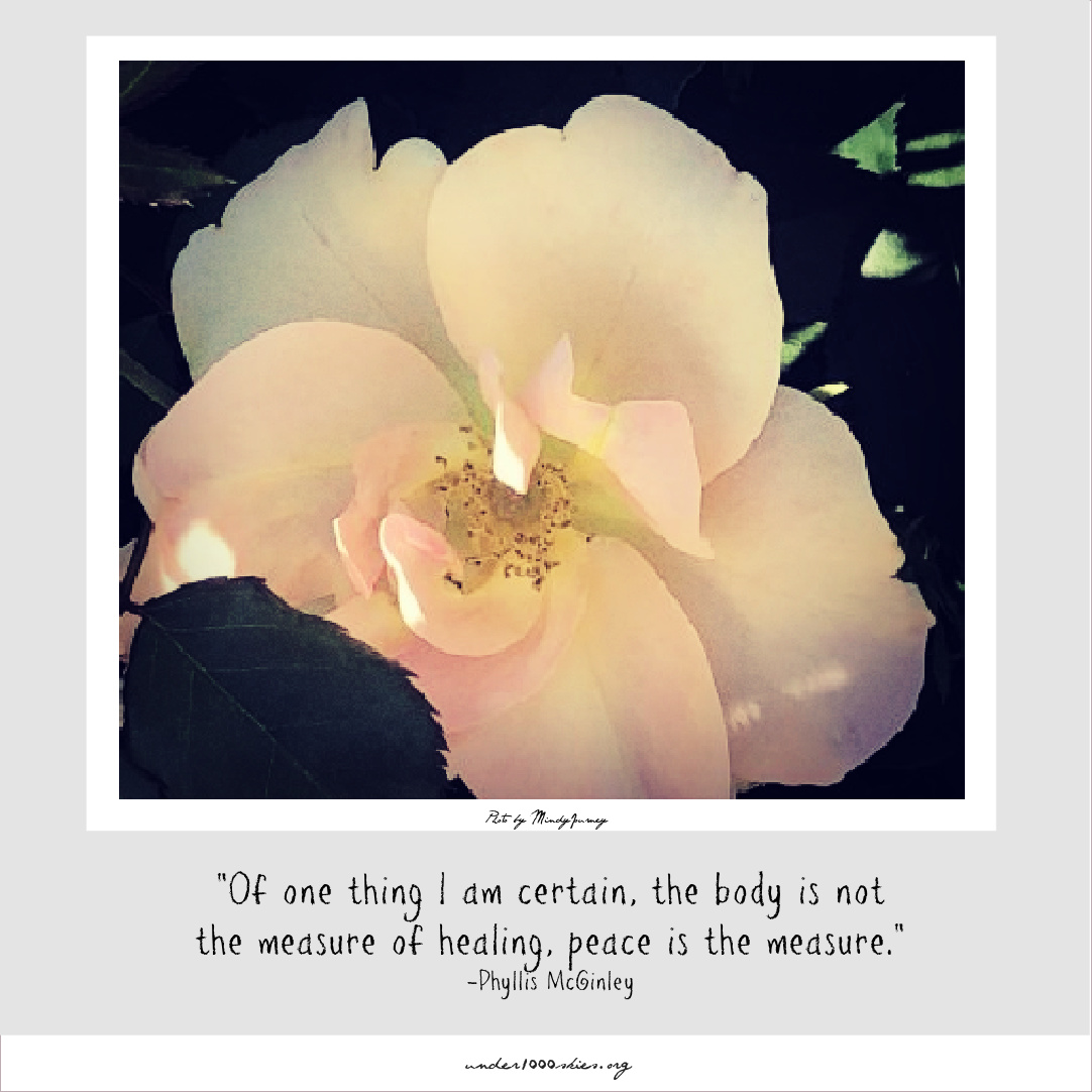 Continue reading”Of one thing I am certain, the body is not the measure of healing, peace is the measure.”