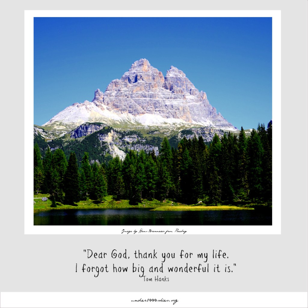“Dear God, thank you for my life. I forgot how big and wonderful it is.”